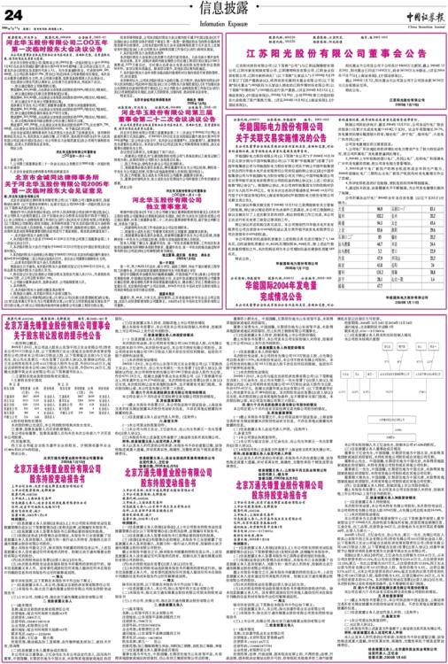 国投华靖电力控股股份有限公司2004年度发电量完成情况公告
