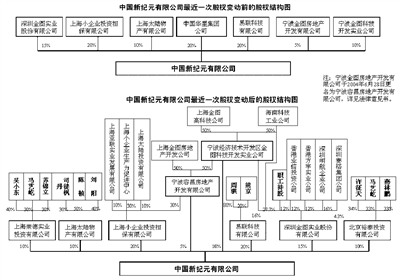 中国新纪元有限公司最近一次股权变动前后公司股权结构图