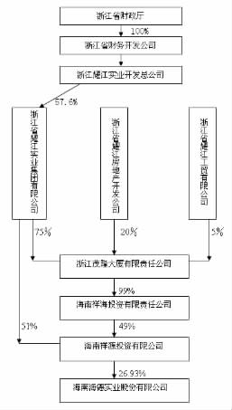 整体改制前,耀江集团公司由耀江开发持股4900万元(占注册资本总额的57.6%),由浙江省财务开发公司持股1500万元(占注册资本总额的17.6%),由浙江省华浙裕财经投资公司持股600万元(占注册资本总额的7%),由浙江省华浙商业投资公司持股500万元(占注册资本总额的5.9%),由浙江省华浙农业投资公司持股500万元(占注册资本总额的5.9%),由浙江省华浙工业投资公司持股300万元(占注册资本总额的3.5%),由浙江财政证券公司持股200万元(占注册资本总额的2.5%)。浙江省华浙裕财经投资公司、浙江省华浙商业投资公司、浙江省华浙农业投资公司、浙江省华浙工业投资公司均为浙江省财务开发公司的子公司。