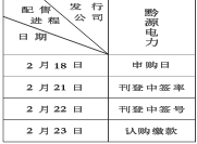 注:黔源电力发行5000万股A股,发行价为5.97元/股,配售详情参见1月25日和2月1日招股意向书和发行公告。