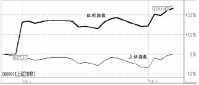2005年1月4日,上证红利指数正式发布,该指数挑选在上证所上市的现金股息率高、分红比较稳定、具有一定规模及流动性的50只股票作为样本股,以反映上海证券市场高红利股票的整体状况和走势,其中不乏中国石化、宝钢股份、上海汽车等一批大盘蓝筹股。然而在开始阶段,由于新股询价发行和非流通股转让的预期,基金等机构投资者操作较为谨慎,从而造成多为基金重仓持有红利样本股走势并不尽如人意。