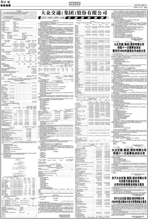 大众交通(集团)股份有限公司2004年度报告摘要