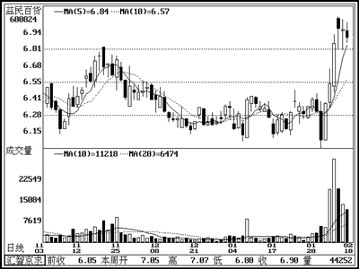 年报公布当日股价大跌,次日股价开始放量上扬;节后仍在消化获利盘和套牢盘,连续三个交易日内该股均出现较长的下影线,主动性买盘比较突出,估计后市该股仍将在7元附近消化历史上的解套盘。公司在淮海路等黄金商业地段拥有大量商业房产,增值空间巨大。 (银河证券 曹远刚)