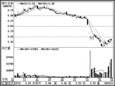 2004年主营业务收入大幅增长,主导产品精纺呢绒面料销售趋旺,服装对外贸易业务快速发展,已占公司主营业务收入的50%。今年以来因公司高管涉嫌犯罪、预亏等负面消息影响,股价连续暴跌。如成交额继续维持较高水平,短线可能继续反弹。