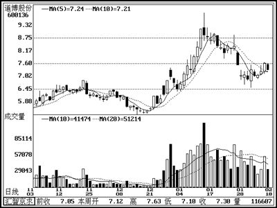 从二级市场走势来看,该股自上市以来就一路下跌,去年更是叠创新低,技术上严重超跌,2005年1月21日突然放量涨停,成为市场反弹的龙头,并几次带动大盘向上,总体出现大涨小回走势,后市仍可波段操作,目前来看,近三天的缩量阴线已经基本调整到位,短线将有继续上冲的概率,建议投资者予以关注。