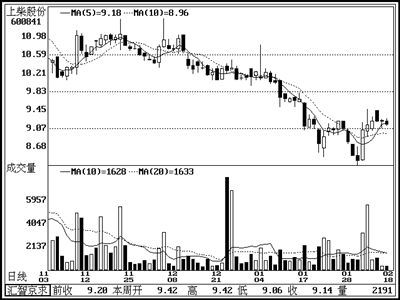 600841上柴股份:预约公布年报日期:2月26日,逐级递下,弱势明显,反弹减持。