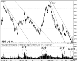 当股指经过连续的下跌调整之后,市场必然会孕育一定的反弹力量,而每一次反弹的成功都需要必不可少的两个条件:首先,是股指向上突破下降压力线的制约;其次,是成交量的放大。目前上证综指在节前已经突破了由2004年9月1496点形成的下降压力线的制约,欠缺的只是成交量的放大配合。