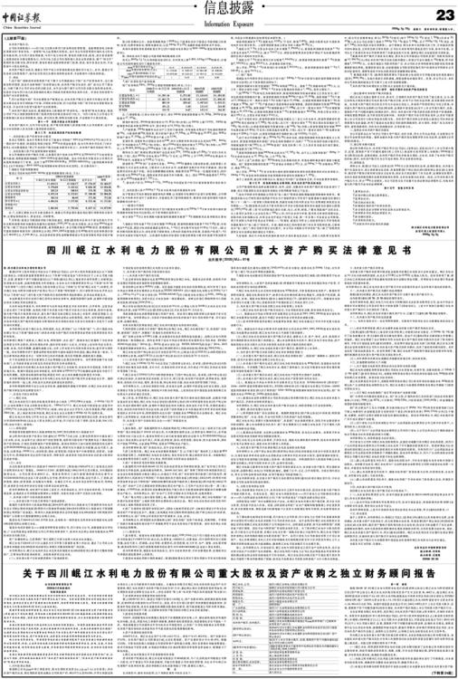 关于四川岷江水利电力股份有限公司重大股权及资产收购之独立财务顾问报告