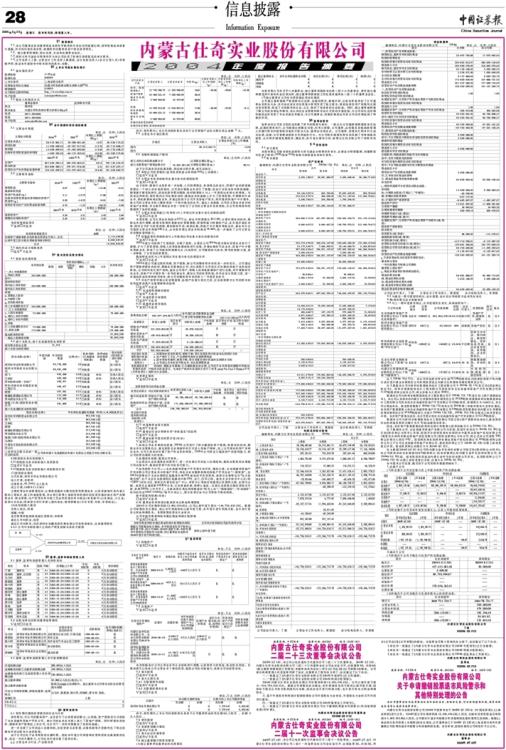 内蒙古仕奇实业股份有限公司2004年度报告摘要