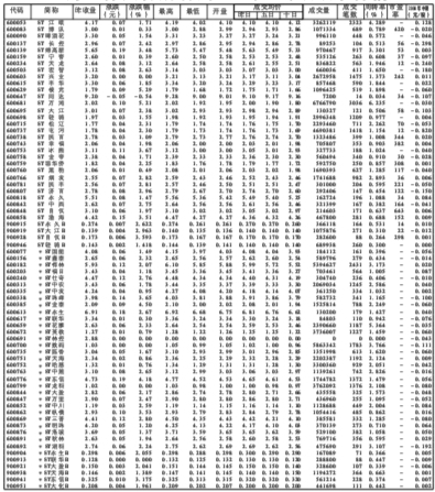 上海证券交易所特别处理(ST)股股票行情