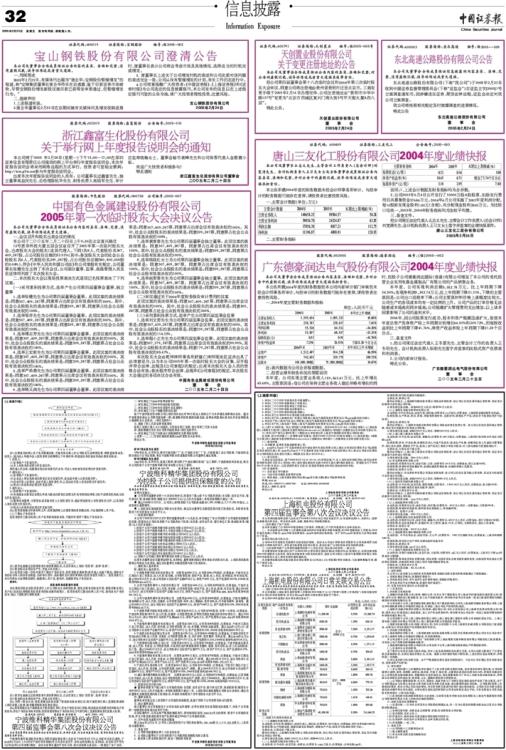 浙江东方集团股份有限公司三届董事会第三十二次会议决议公告暨召开2005年第一次临时股东大会的通知