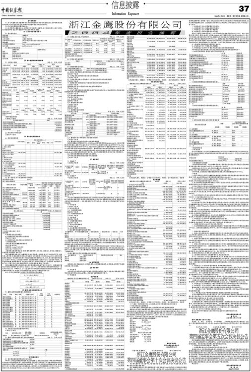 浙江金鹰股份有限公司2004年度报告摘要