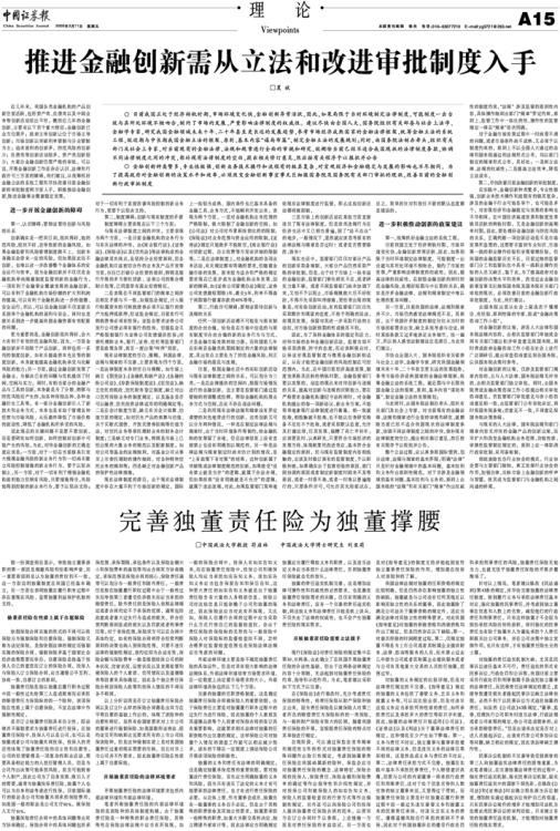 推进金融创新需从立法和改进审批制度入手