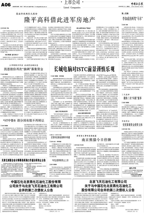 根据北京飞天石油化工有限公司(以下简称“本公司”)与中国石化北京燕化石油化工股份有限公司(以下简称“北京燕化”)之间签署的《吸收合并协议》,并经本公司于2005年3月4日召开的临时股东会决议通过,本公司拟与北京燕化通过吸收合并的方式进行合并。本公司为合并方,在本次合并后作为存续公司持续经营;北京燕化为被合并方,并在合并后注销法人资格,所有资产、负债、业务及相关权益均由存续公司承继。本次合并尚需获得有关中国政府和临管机构的批准或核准。现根据《中华人民共和国公司法》规定,公告如下: