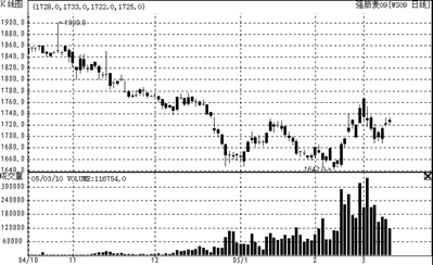 郑州强麦0509合约昨日收报1725元,小跌1元。强麦0509合约陷入整理行情,全天处于窄幅波动状态。目前面粉需求正在逐步增加,农民小麦出售量也在增加,预计后市整理行情将延续。(于军礼)