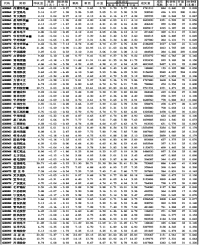 香港证券市场国企(H)股行情日报表