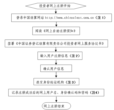 注4:注册成功后,提示页面列出了后续操作需要的各项材料。投资者须牢记密码、密码查询答案以及系统配发的网上用户名和身份确认码。其中,身份确认码仅在办理身份验证时一次性使用;网上用户名和密码在登录网络服务系统时使用;密码查询答案用于忘记密码时重设密码。