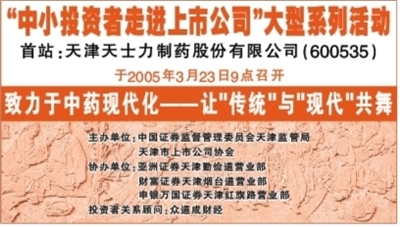 致力于中药现代化——让“传统”与“现代”共舞主办单位:中国证券监督管理委员会天津监管局