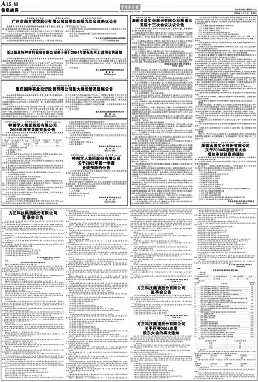方正科技集团股份有限公司关于召开2004年度股东大会的再次通知