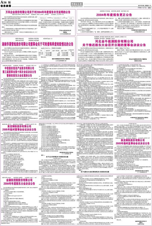 2004年年度报告更正公告