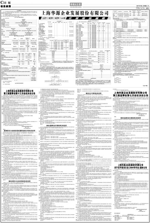 上海华源企业发展股份有限公司2004年度报告摘要