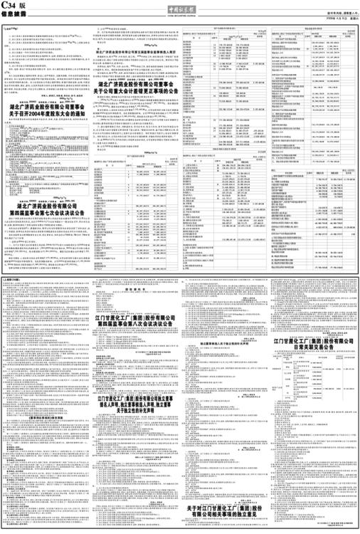 江门甘蔗化工厂(集团)股份有限公司2004年度报告摘要