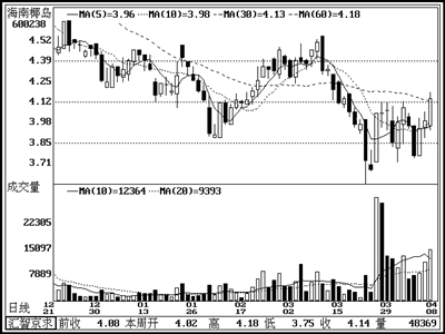 公司的主打产品“椰岛鹿龟酒”的市场份额稳步上升,市场份额不断得到巩固。公司下属的海口酒厂改造工程已经完成,产业基础更加牢固。同时公司的贸易业务发展迅速,成为公司有力的利润增长点。公司股价在4元一线支持明显,并且温和放量,有继续反弹的动力。