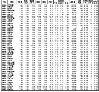 深圳证券市场中小企业板股票行情