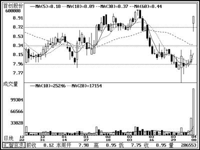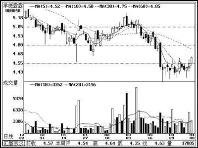该股业绩优秀,受到了主力追捧。虽然国家实施宏观调控导致整个板块步入了调整周期,但其在7元附近构筑箱形整理,连续放大成交量已经表明主力介入。近期受行业不利传闻影响,该股股价跌破箱形但成交量明显萎缩,主力构筑空头陷阱迹象明显,投资者可关注。