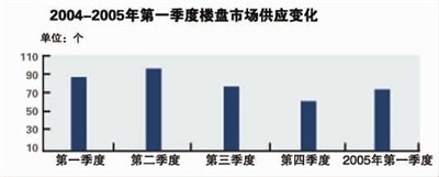 今年北京房地产市场一季度新盘供应数量与去年同比有一定的回落,约为70多个(包括续盘项目二、三期)。其中一月份新开盘的项目有20个,二月份新开盘项目只有5个,三月份截至目前供应量已经达到49个,且主要以项目二、三期为主。据最新统计,2005年上半年仍将有900多万平方米新开工项目集中入市。