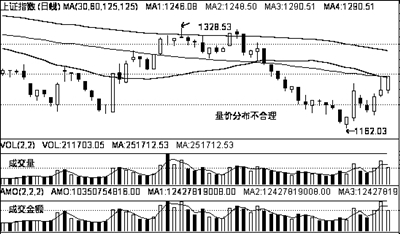 但值得注意的是,周四全天的成交量要明显少于2月23日时的成交量,说明现在市场成交主要集中在高价股中。在市场还处于相对低点时,强势股成交的急剧放大,反映了长线持股资金信心的松动。这一点从周四日K线留下长上影可以理解。这种强势股在弱势市场套现筹码的行为,决定了在未来一段时间股指还会有一个继续探底的过程。