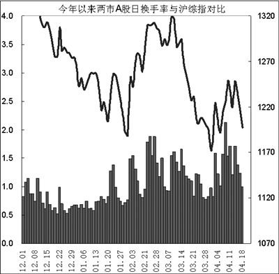 考察半年多来两市A股量能变动情况可知,去年9月13日以来(期间沪综指平均周收盘点位在1297点),算术平均两市A股周换手率为5.89%,明显高于去年4月1783点见顶后至9月10日(期间沪综指平均周收盘点位在1469点)期间的算术平均两市A股周换手率(为4.75%)。进一步考察近期两市A股日换手率可知,去年9月9日首次击破1300点后至上周五(实际交易日为144日),简单累加后的两市A股日换手率已高达173.38%。由附图可知,自去年12月以来,两市A股日换手率形成了明显的逐渐升高的波动趋势特征。在2·2行情前后,市场连续间歇式放量,而4·1行情以来,市场量能放大持续性良好,其中4月7日创出了2.124%(对应的成交额为225.87亿元)的高值,超过了2月25日的1.887%(对应成交额为215.80亿元),创出近期的新高。种种迹象表明,近一年来,伴随着市场重心的明显下移,市场内生的下跌抵抗动力明显增强,市场新旧机构资金已经较充分地交换了筹码,确实有部份场内外机构资金积极入场。