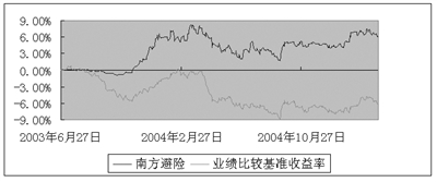 2005年1 季度,南方避险增值基金净值增长率为1.65%,同期上证指数收益