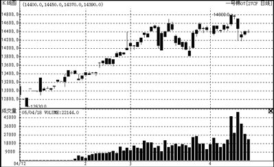 棉花0507合约周一收报14390元,下跌20元。受进口配额制度可能改变影响,棉花期货在20日均线一带波动,但大跌的可能性不大,中国可能再度提高纺织品出口税率。预计后市仍是整理行情。(格林期货 于军礼)