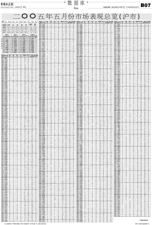 二〇〇五年五月份市场表现总览(沪市)