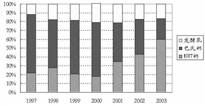 1999年以来,以伊利、蒙牛为代表的草原基地型乳企迅速崛起,由于储运便捷,基地型乳企携常温奶大举南下,不断吞噬巴氏奶的原有阵地,其市场份额目前已占到全国液态奶(酸奶除外)的近70%。而巴氏奶的市场份额则相应萎缩到了30%左右。