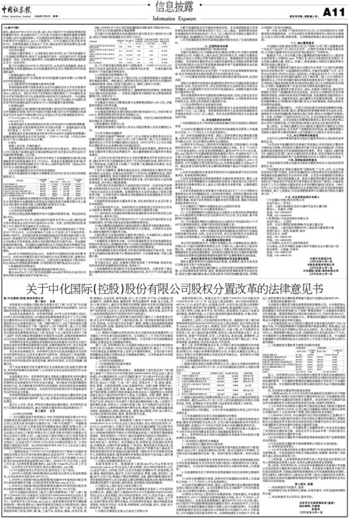 关于中化国际(控股)股份有限公司股权分置改革的法律意见书