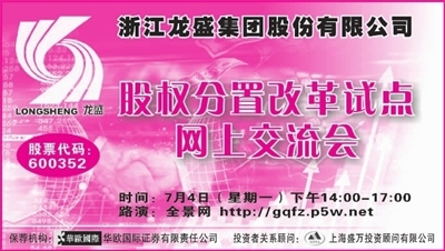 浙江龙盛集团股份有限公司股权分置改革试点网上交流会