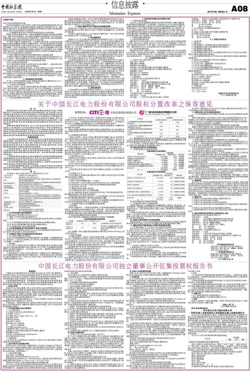 根据中国证券监督管理委员会《关于上市公司股权分置改革试点有关问题的通知》、《关于做好第二批上市公司股权分置改革试点工作有关问题的通知》、交易所和中国证券登记结算有限责任公司《上市公司股权分置改革试点业务操作指引》等有关法律法规的要求,受中国长江电力股份有限公司委托,中信证券股份有限公司和广发证券股份有限公司担任本次股权分置改革的保荐机构,并就股权分置改革事项向董事会并全体股东提供保荐意见。
