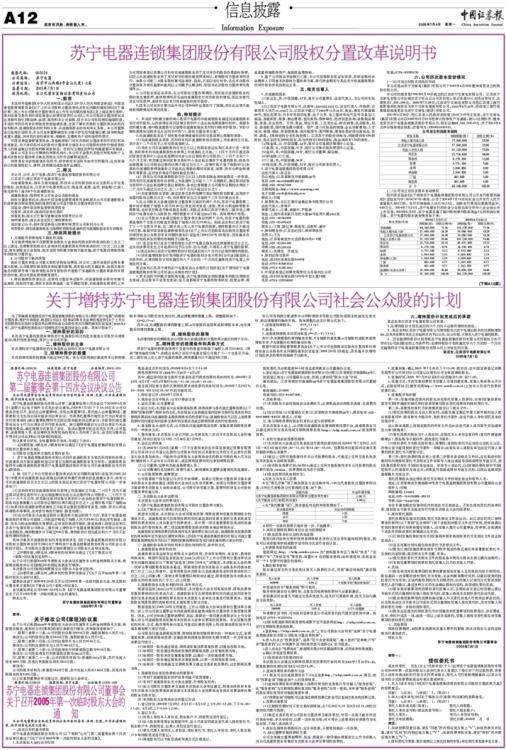 为了积极稳妥地推进苏宁电器连锁集团股份有限公司(简称“苏宁电器”)的股权分置改革,维护市场稳定,根据《公司法》、《证券法》等有关法律的规定和《关于上市公司控股股东在股权分置改革后增持社会公众股份有关问题的通知》(证监发[2005]52号),苏宁电器的控股股东计划增持苏宁电器的社会公众股。具体计划如下: