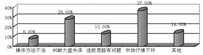 占总比例85%的亏损者中,他们的亏损幅度究竟有多大?结果显示:亏损幅度在50%以上的为14%;亏损幅度在30%至50%的投资者占50%;还有28%的人亏损幅度为10%至30%;亏损在10%以内的人数只有8%。