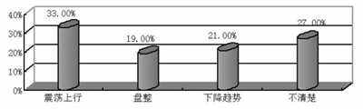 中小投资者对下半年行情怎么看?大盘会在怎样的一个空间内运行?影响市场走势最主要的因素又是什么?调查显示,有33%的投资者认为会“震荡上行”;有19%的人认为会“盘整”;有21%认为会呈“下降趋势”,还有27%表示“不清楚”。选择看多、认为大盘会“震荡上行”的人,比选择看空、认为大盘会下跌的人多了十二个百分点,说明相对多的中小投资者对后市抱乐观态度。同时也应看到,对后市看不清楚、感到迷茫的人也占了相当高的比例。