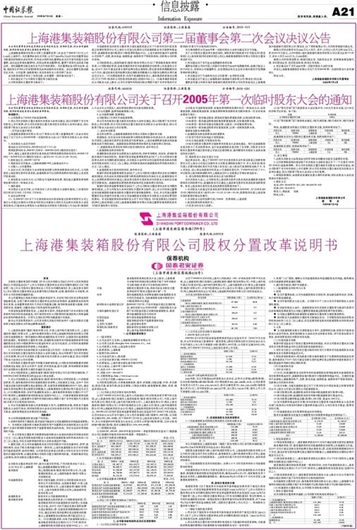 上海港集装箱股份有限公司(以下简称公司)第三届董事会第二次会议审议通过了关于召开公司2005年第一次临时股东大会(以下简称本次股东大会)的决议。