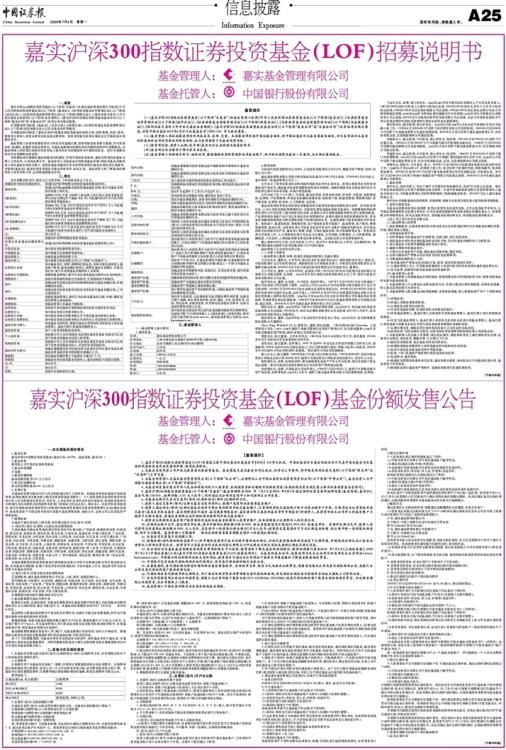 1 、嘉实沪深300 指数证券投资基金(LOF )的募集已获中国证监会证监基金字“2005” 103号文批准。中国证监会对本基金的核准并不代表中国证监会对本基金的风险和收益作出实质性判断、推荐或者保证。