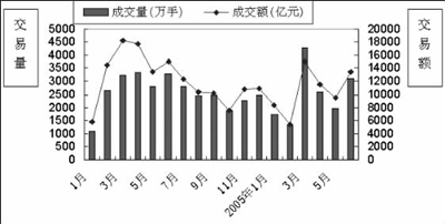 据三家期交所最新统计数据,今年1至6月全国期货市场总交易量为15024.35万手,总交易额为63335.98亿元,同比分别减少8.31%和25.25%。其中,1至6月上期所交易量、交易额同比分别减少44.03%和41.62%;大商所累计交易量、交易额同比分别增长8.13%和减少18.96%;郑商所累计交易量、交易额同比分别增长12.21%和100.45%。在经历了03、04两年的快速发展后,今年期货市场形势令人担忧。