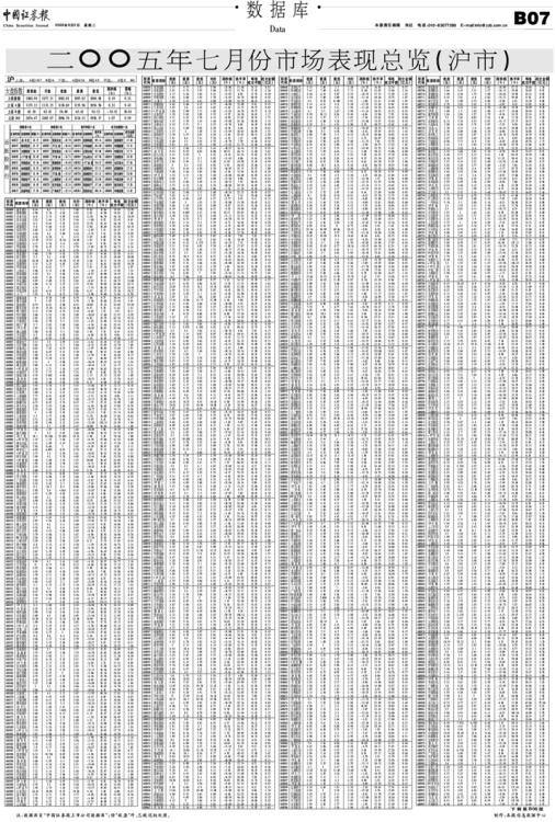 二〇〇五年七月份市场表现总览 (沪市)