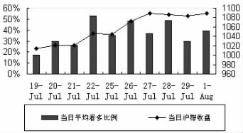看多情绪与指数走势关联图(7月19日至8月1日)