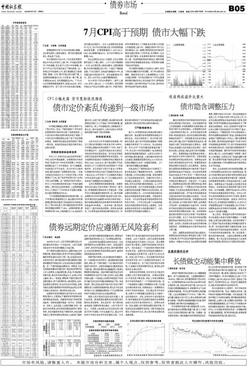 7月CPI高于预期 债市大幅下跌