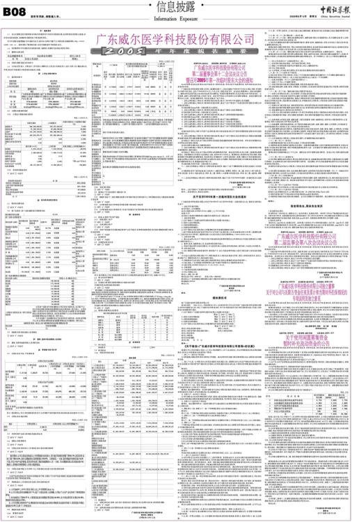 广东威尔医学科技股份有限公司2005半年度报告摘要