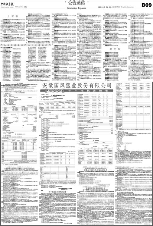 安徽国风塑业股份有限公司2005半年度报告摘要